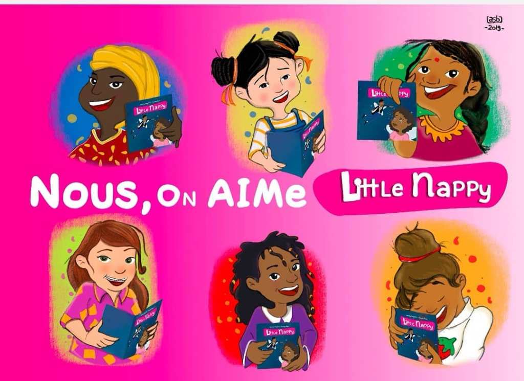 Il s’agit de la création d’un personnage animé dans le but de développer l’estime de soi dès le plus jeune âge. Je m’adresse à ma communauté mais je m’adresse aussi à la diversité en générale. J’ai choisi de mettre en évidence un personnage noir en rapport avec mon histoire personnelle et aux discriminations subies par les enfants dans la cour de récré. Dans mon livre « Little Nappy », je valorise la diversité en générale car l’héroïne est entourée de personnes qui lui ressemble dans la cour de récré. Elle retrouve plusieurs origines dont des asiatiques, des maghrébins, des européens…