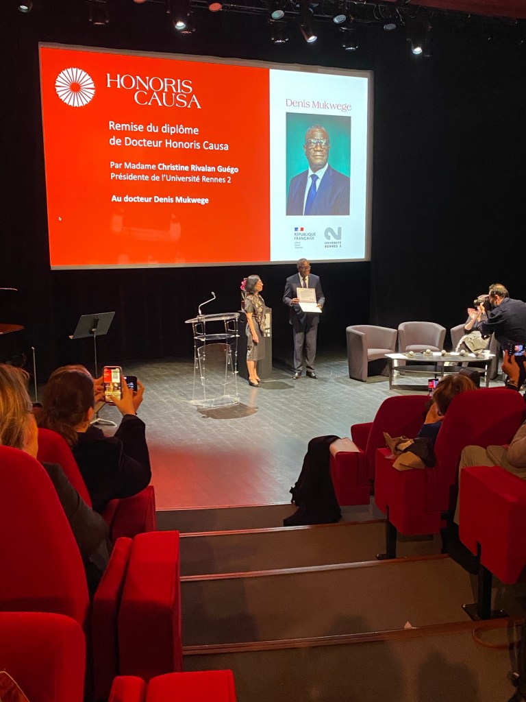 « Ce n’est qu’avec cette vision holistique de la justice que chaque société pourra avancer durablement sur le chemin de la paix qui est la grande aspiration de toutes les survivantes de violences sexuelles à travers le monde » a déclaré le Docteur Denis Mukwege lors de la cérémonie du titre de Docteur Honoris Causa à l’université Rennes 2.